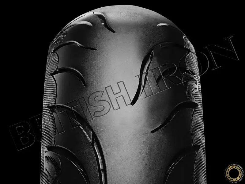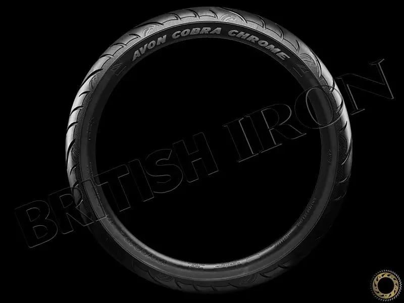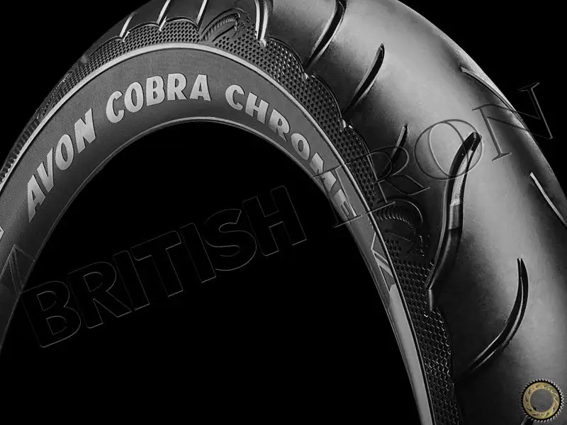 This tire offers premium performance and a stylish Cobra themed design. The Cobra Chrome is the next chapter in Avon design, featuring a snake skin appearance and embossed cobra head logo. Available with enhanced compounds and new construction that delivers improved stopping distances in wet conditions.
