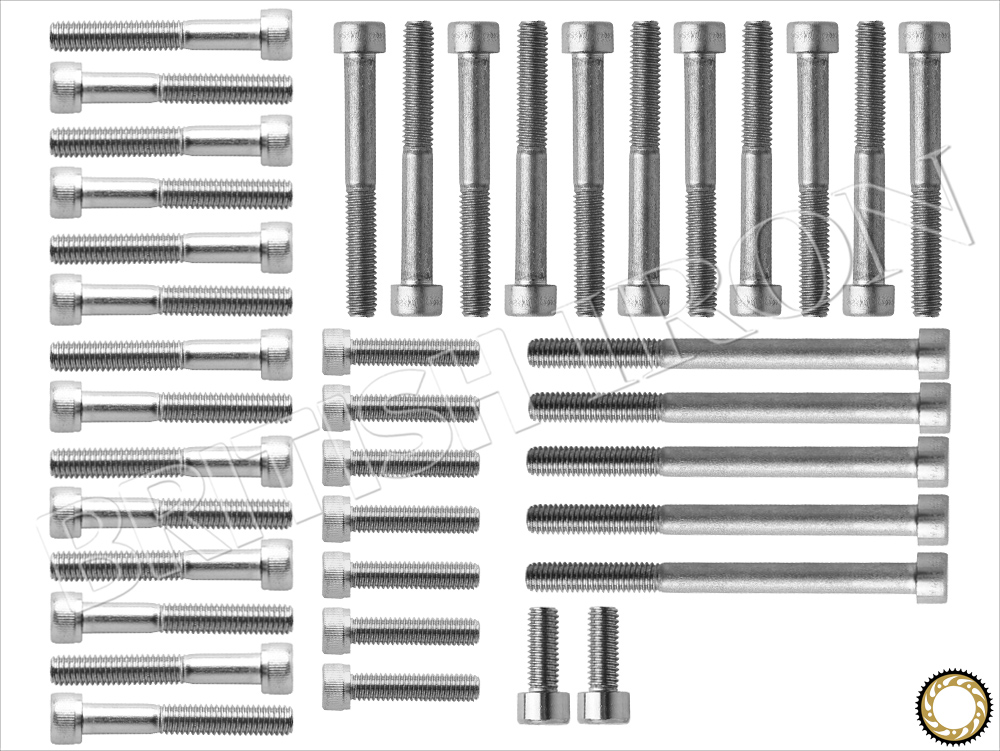 Replacement bolts for the clutch cover, alternator cover, sprocket cover, and gearchange cover.