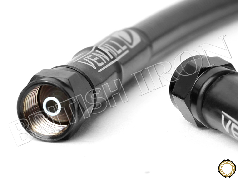 UK made, Venhill brake lines use smooth bore DuPont Teflon hose for better heat resistance. Marine grade stainless steel braiding minimizes expansion for better braking force. PVC jacket prevents any abrasions on painted surfaces. Venhill hoses meet or exceed DOT requirements, tested to 1500psi.