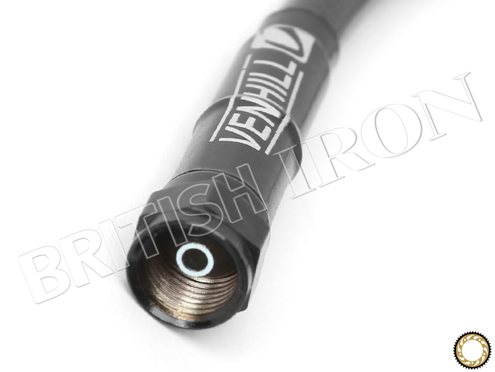 UK made, Venhill brake lines use smooth bore DuPont Teflon hose for better heat resistance. Marine grade stainless steel braiding minimizes expansion for better braking force. PVC jacket prevents any abrasions on painted surfaces. Venhill hoses meet or exceed DOT requirements, tested to 1500psi.